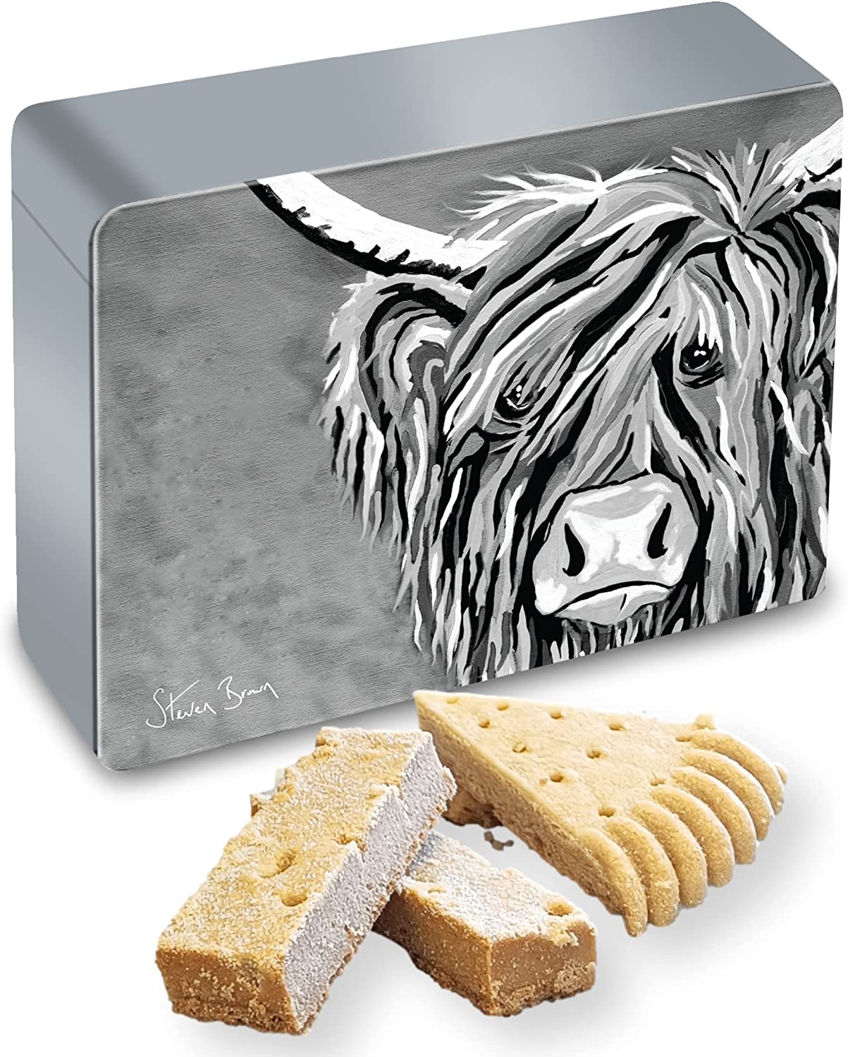 SPECIAL AND LUXURIOUS - All butter short bread cookie treat - Slowly hand-baked to a traditional Scottish family recipe and guaranteed to melt in the mouth. Delicious individual fingers and petticoat tails, ideal as morning coffee biscuits. Beautifully packaged with a resealable lid, the irresistibly crumbly treats sit within a reusable collector’s tin designed by the artist Steven Brown, who has taken the UK by storm with his signature, individually designed McCoo creations. BAKED TO PERFECTION - Each luxury shortbread biscuit is hand baked to perfection using a family recipe using the finest ingredients with a crumbly texture that melts in the mouth. A little naughty but very nice with just the right amount of sugar and a hint of vanilla! Enjoy our full range of premium luxury biscuits in an assortment of beautifully decorative designed boxes and tins featuring exciting beautiful, bold colours that would stand out on display around your home