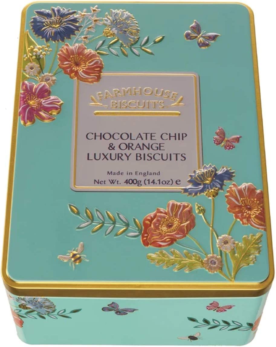 Farmhouse Chocolate Chip & Orange Biscuits in a Floral Meadow Gift Tin - 400 Grams