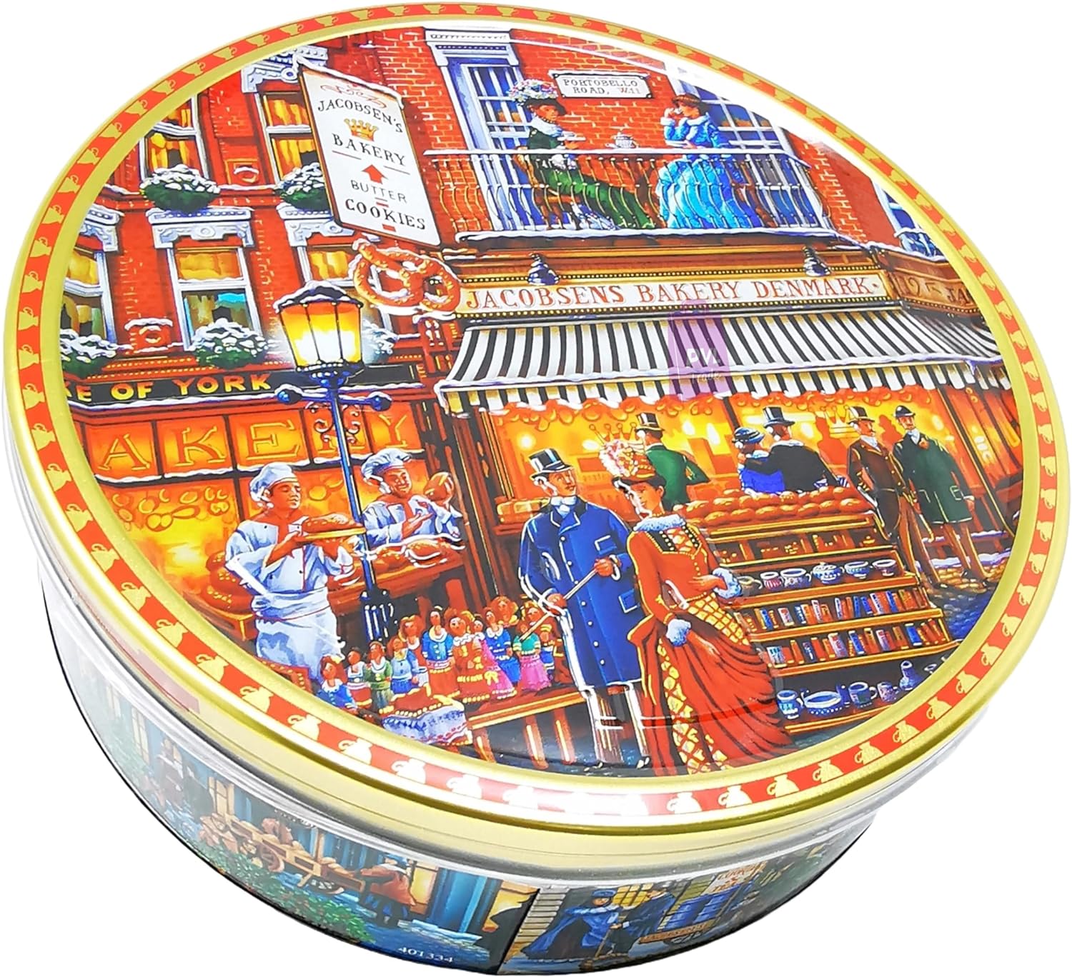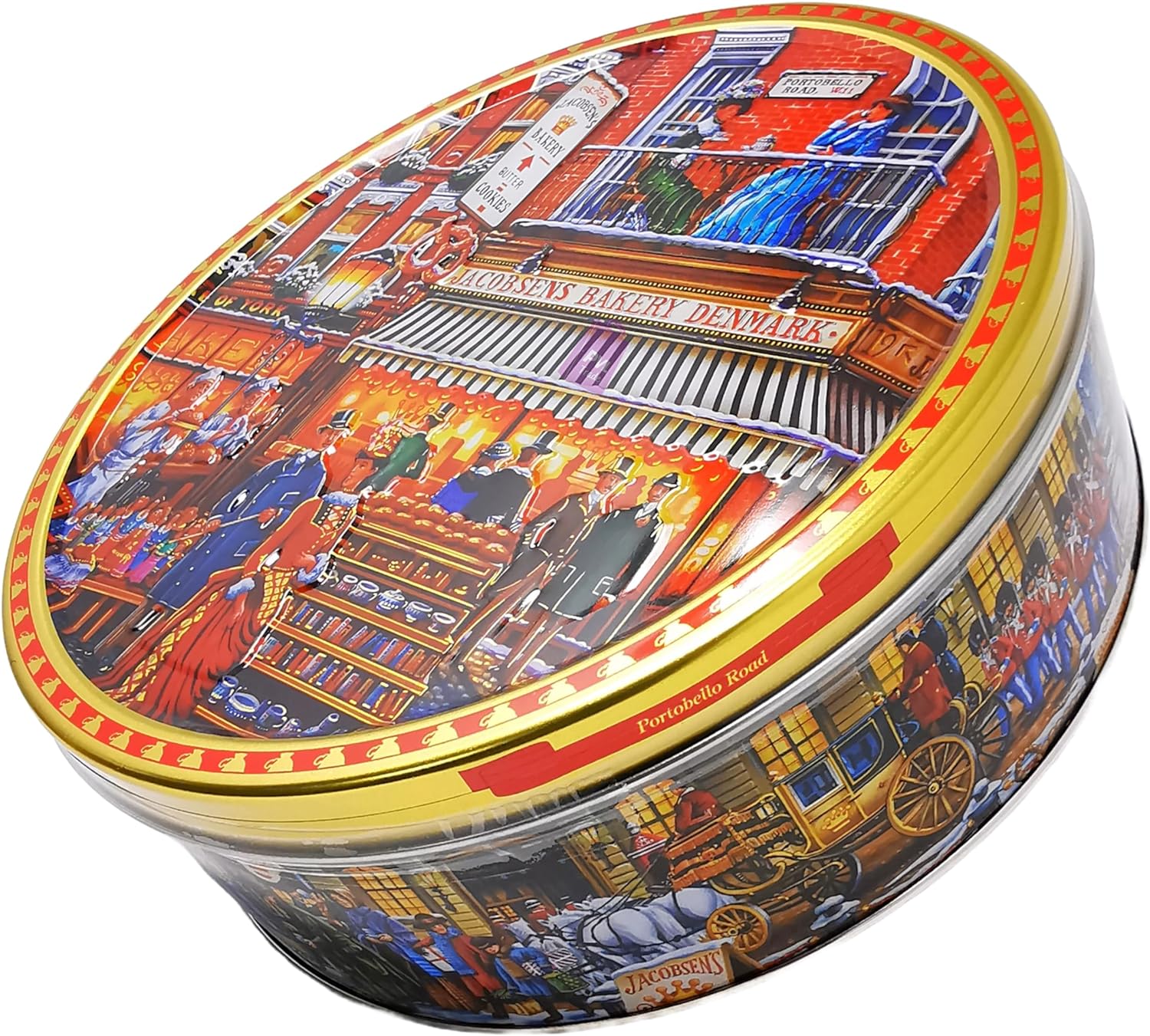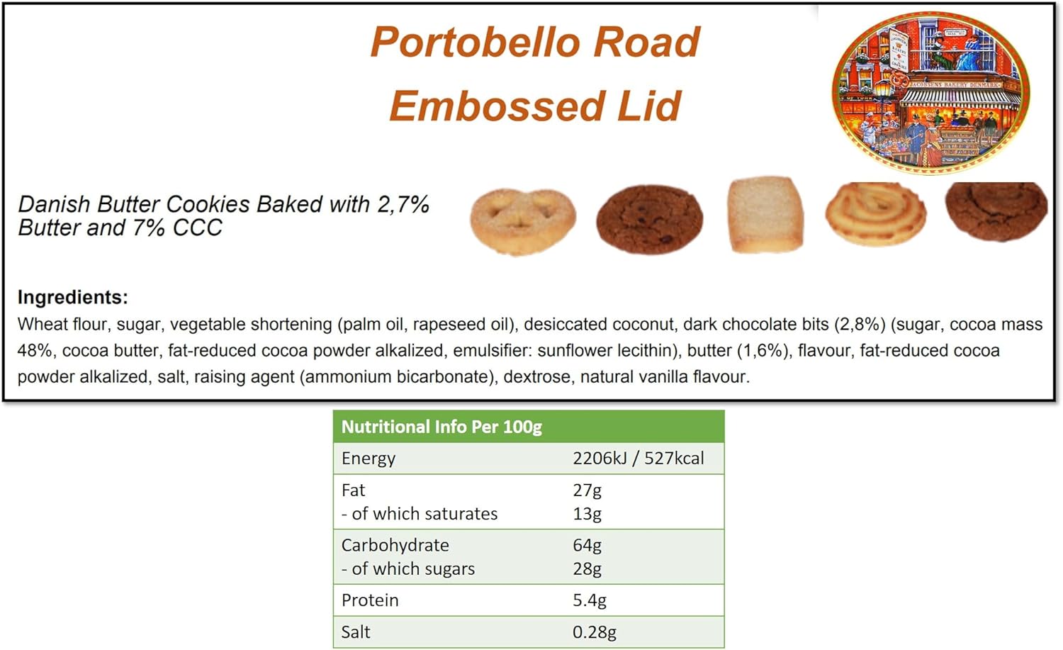 Jacobsens Danish Butter & Chocolate Chip Cookies Assortment in Embossed Baker Shop on Portobello Road London W11 Gift Tin - 400g