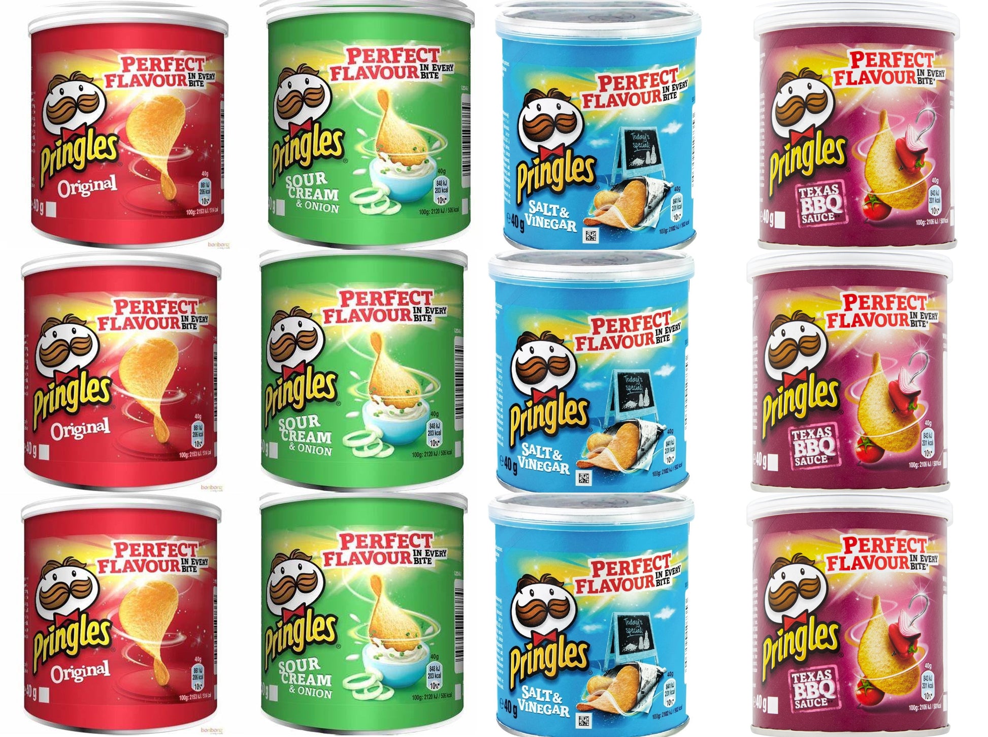 Pringles Mini Selection Tubes (12x40g) - Sour Cream & Onion, Salt & Vinegar, Original and Texas BBQ Sauce